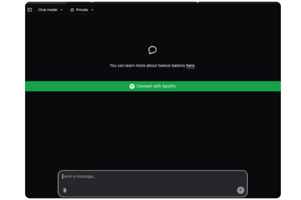 Our Spotify Agent isnât a product. Itâs not even standalone. When you use it, youâre inside the Twelve Balloons chatbot interface. Thatâs the whole idea.